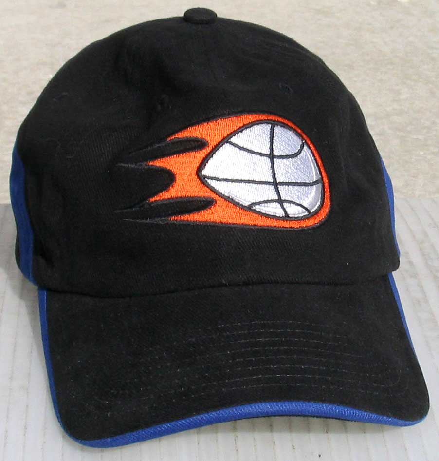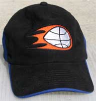 oh-so-sporty City Name Sports Team ambiguous flaming ball thing on a black background, decorated by a snazzy blue line